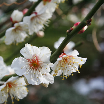 ぐれる。おそるべき梅の香り効果、である。 梅干しはもちろん、こんぶ梅や「小梅ちゃん」など、梅ならなんでもウェルカムな私にとっては、梅の木はぜひ育てたい植物だが、樹木を植えるスペースはない。仕方がないので、毎年、公園や近隣の庭先に咲く花を眺めるのにとどめている。 スーッとのびた枝に点々